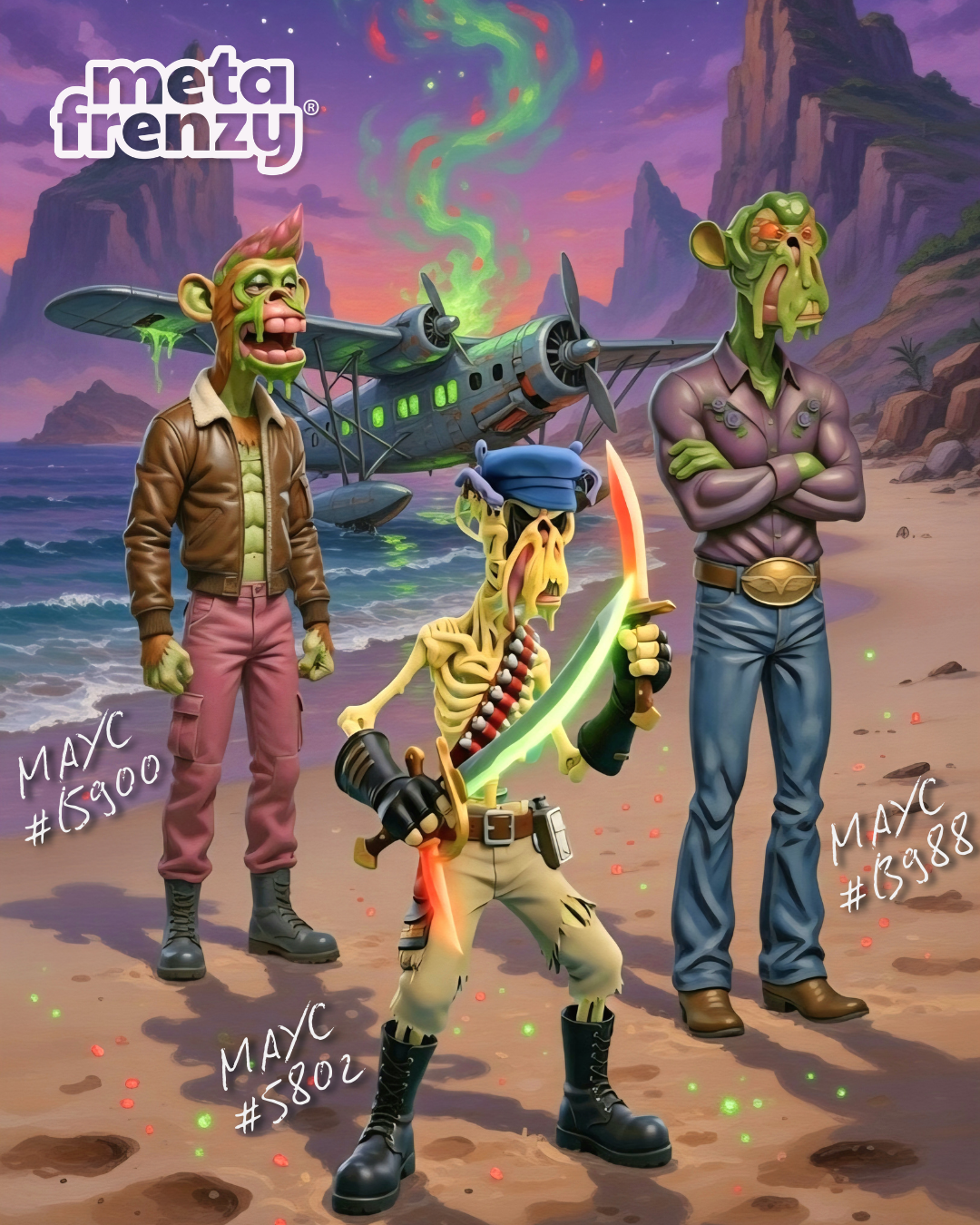Cap's cousins inspired by MAYC #15900 and MAYC #13988, utilizing commercial rights granted to holders by Yuga Labs.