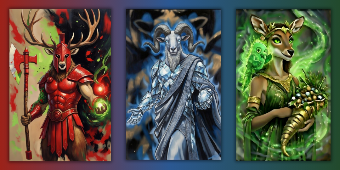 Dē Sē Yey – The protective spirit of Metawood Forest, who grants Blocker of the power of Green Magic. Patient and generous, she is a giant doe holding a cornucopia full of magic treasure.