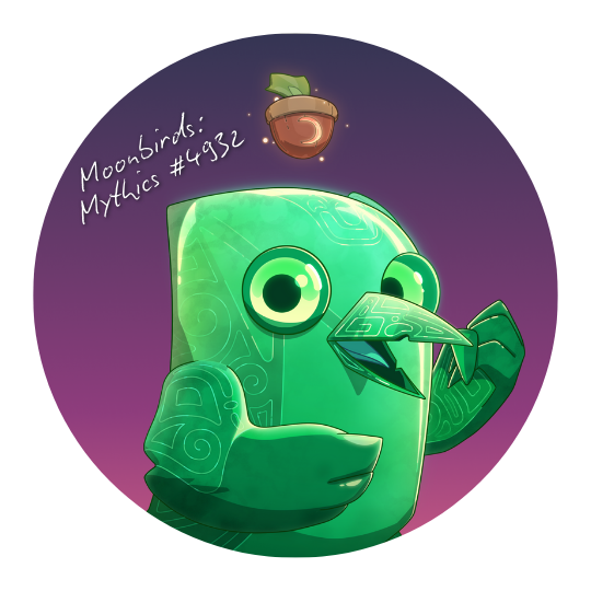 Mythik inspired by Moonbirds: Mythics #4932, utilizing commercial rights granted to holders by Orange Cap Games.